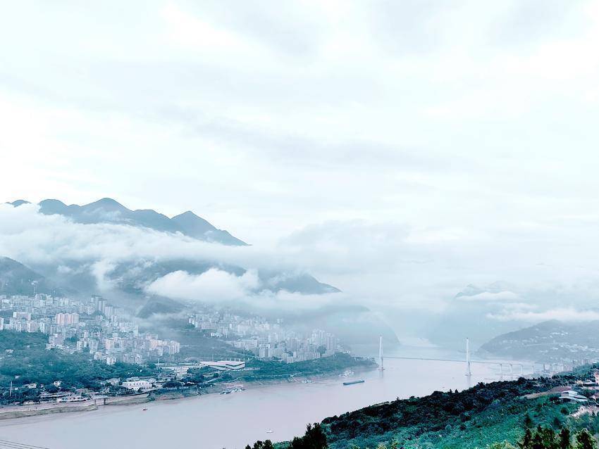 晨雾中的山峦若隐若现,宛如害羞的少女,羞涩地遮掩着自己的面容。江面上,船只静静地航行,唯恐打破山城的宁静。随着太阳逐渐升高,晨雾开始慢慢消散,江面、山峦、城市建筑渐渐清晰起来,巴东县城在晨雾的洗礼下,显得更加清新与秀美。